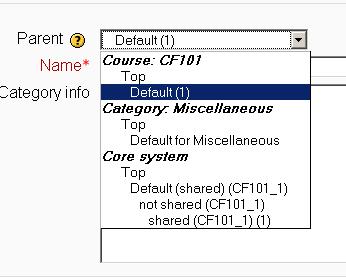 - Notice you can choose to make your category a 'top level' category in any context (see Question contexts) that is available to you. Or you can choose to add your category as a sub category of another category in the same context as the